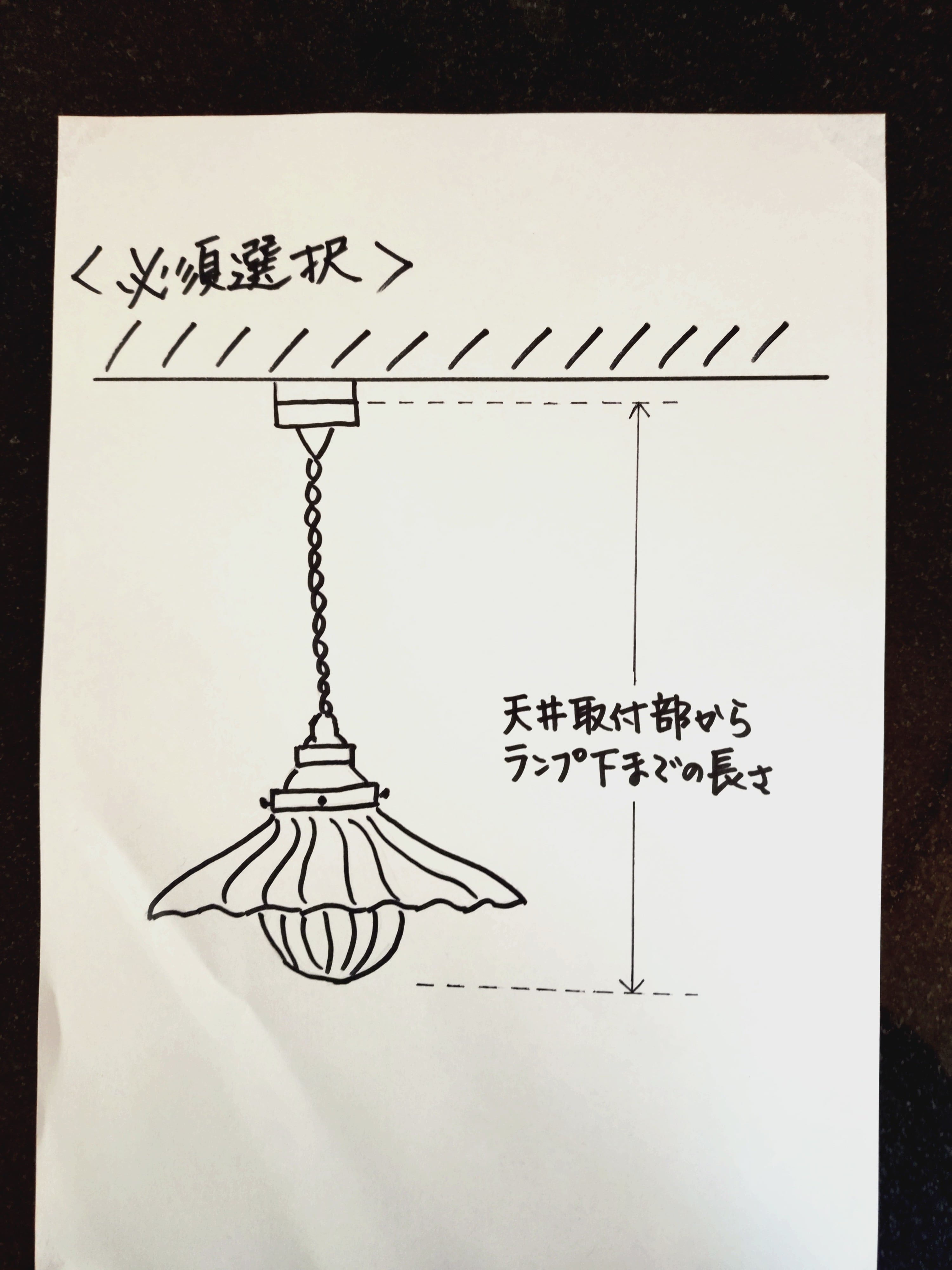 天井取り付け部からランプ下まで1mまでが、標準価格となっています。10cm単位の選択ですが、5cmや7cmなどの細かい数字や3m以上の長さの場合は、[ショップに質問する]ボタンでお問い合わせ下さい。