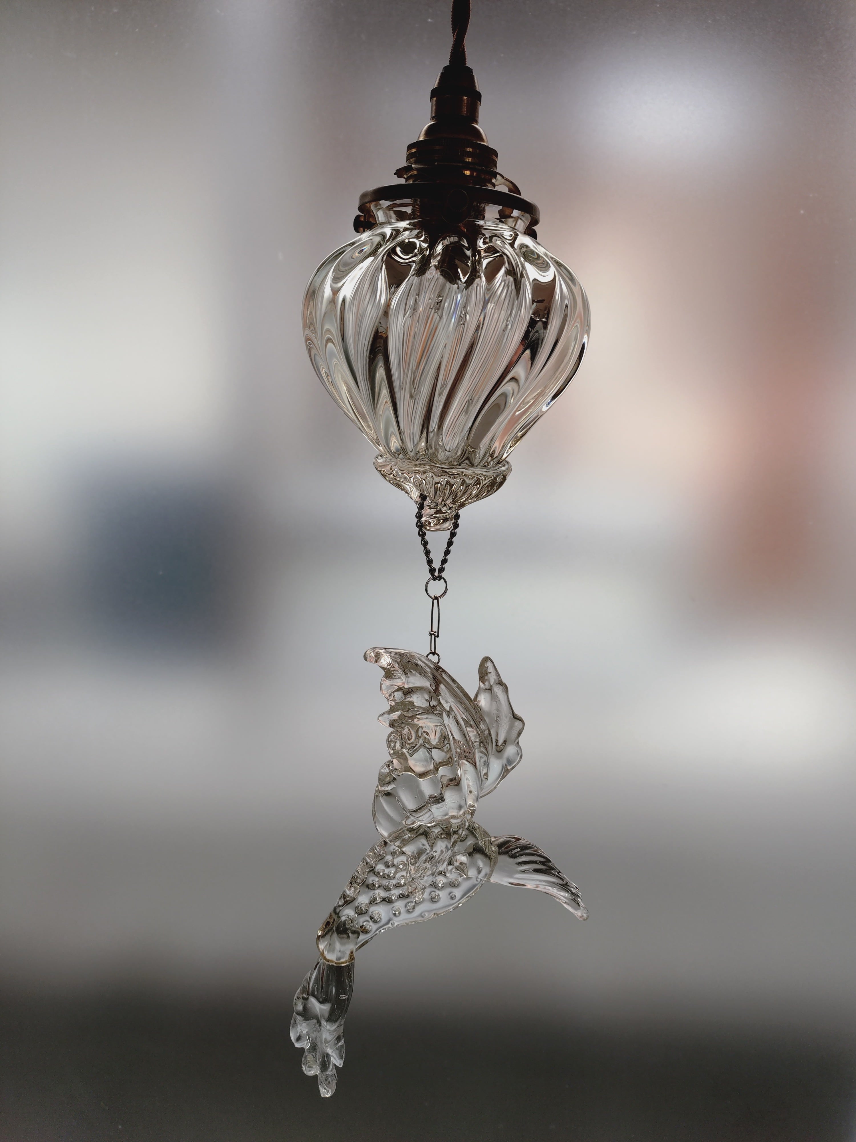 アンティークなランプと、鳥のオブジェを組み合わせた空に浮かぶもののイメージのペンダントランプです。
