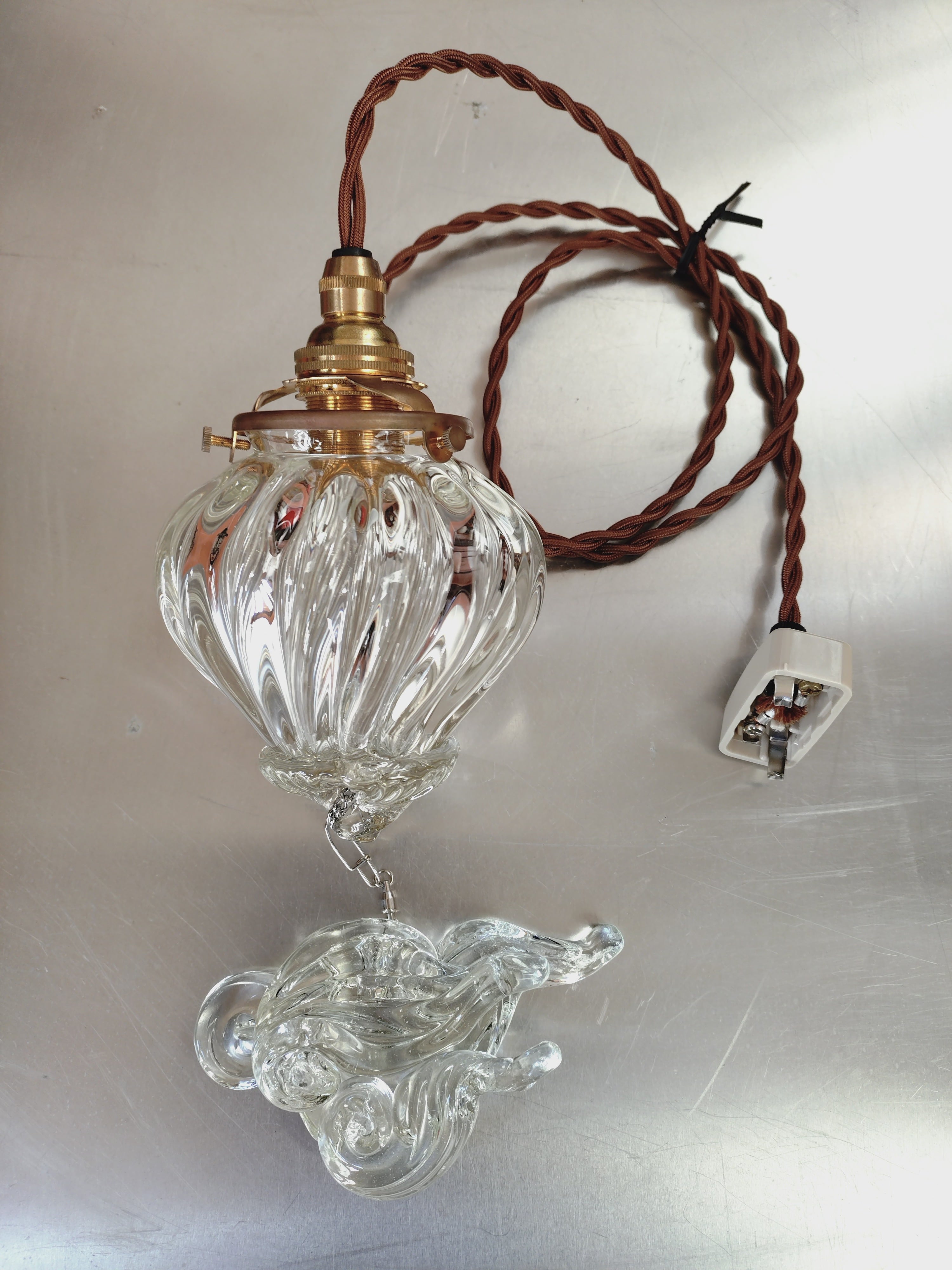 アンティークなランプと雲のオブジェを組み合わせた、空に浮かぶもののイメージのペンダントランプです。
