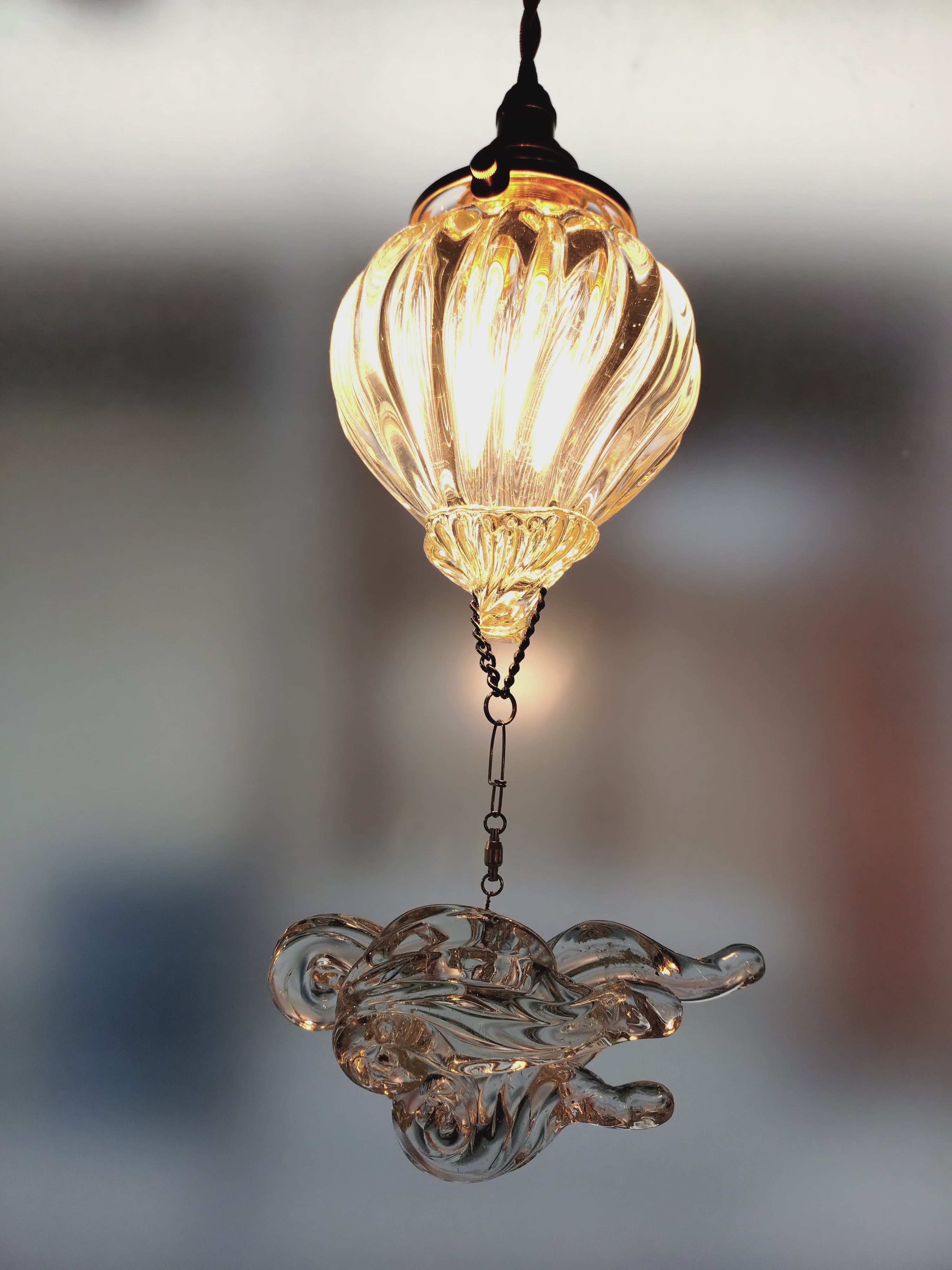 ランプの下に雲が揺らいでいると、夢のあるような雰囲気が演出できるのではと思い、制作しました。昼間点灯しなくても、その雰囲気を楽しんで頂けたらと思います。